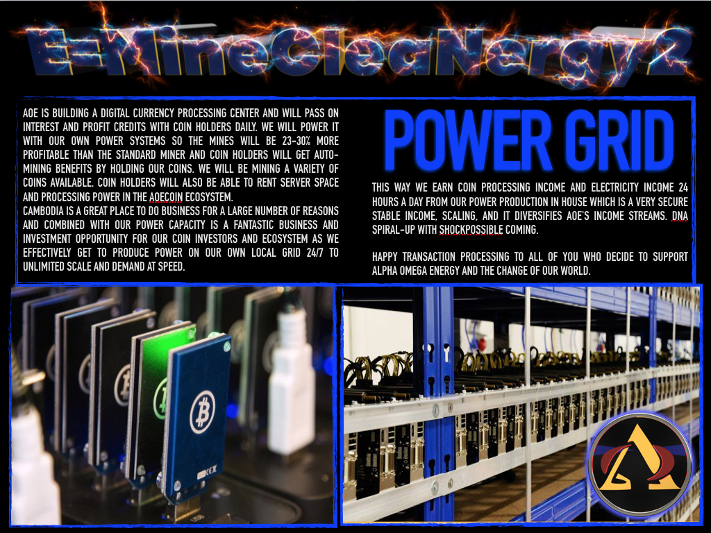 AOE was asked by the 55+ small investors that invested to us in that promotion to mine Crypto so we built a Crypto mining data center in our office with the little bit of money we got, grew to 16 Full time staff, ran the center for a year mining & we were to commercialize our Power systems to our mining center, but the promoter was frauding everyone behind us, and we never even got the minimum $250,000 we needed to finish it despite 2.5 years of lies to our face.